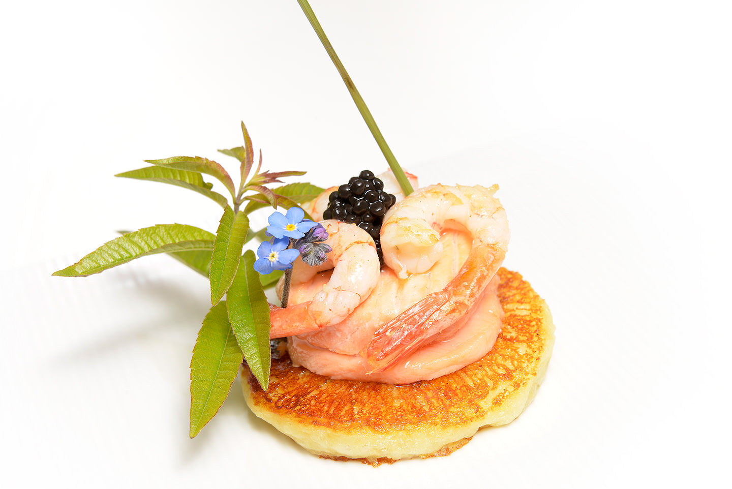 Blinis de pommes de terre au saumon et gambas